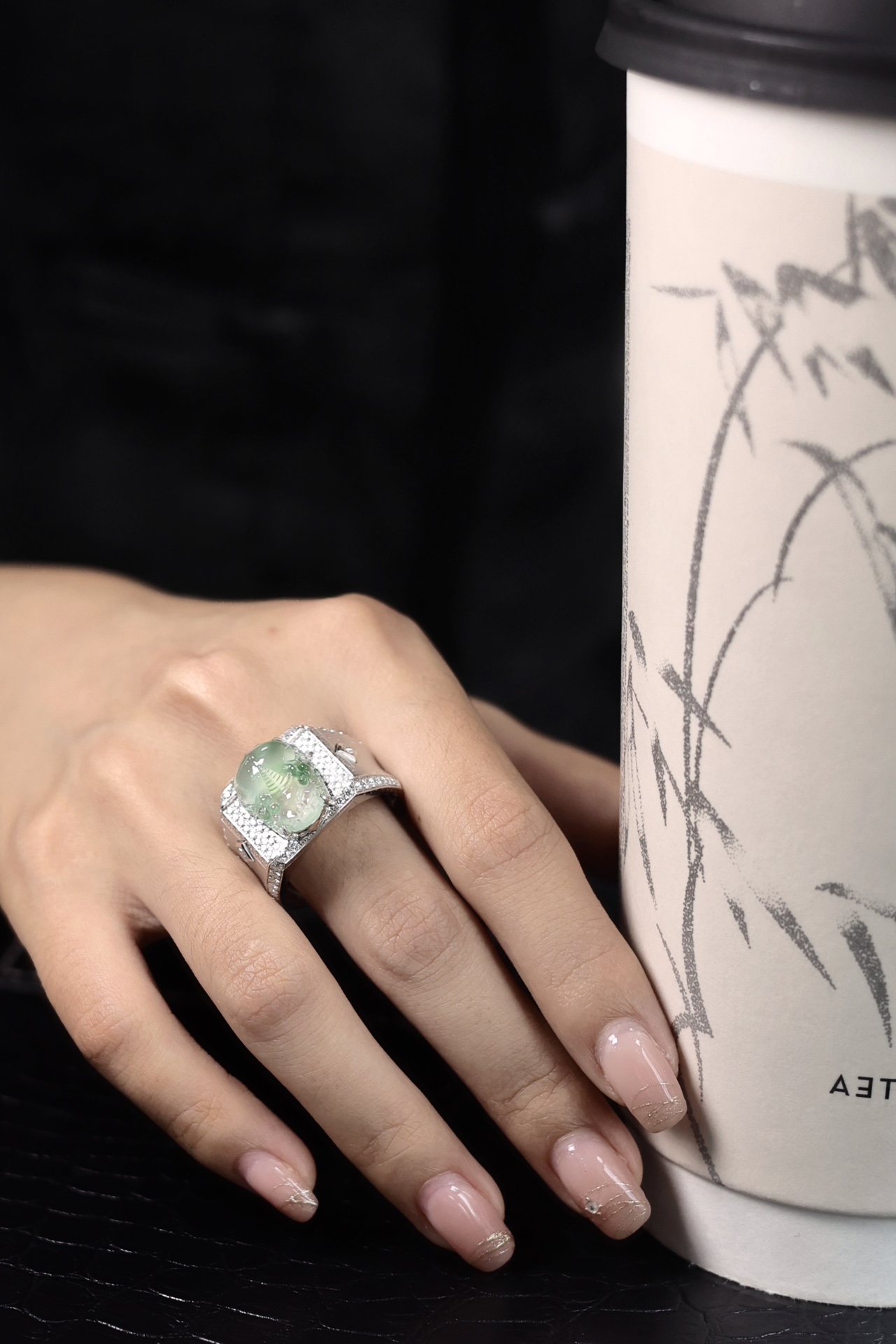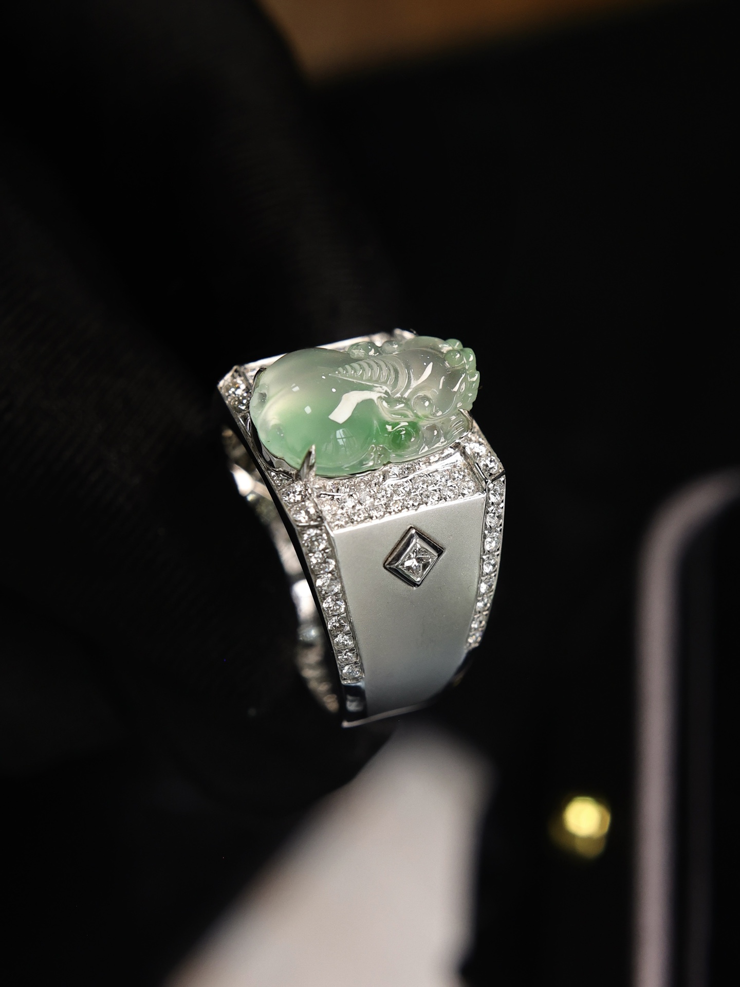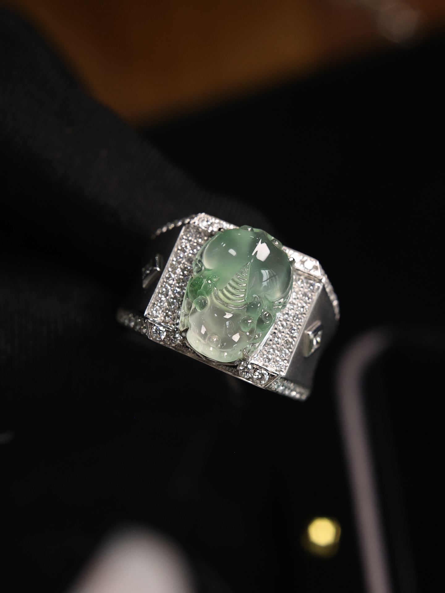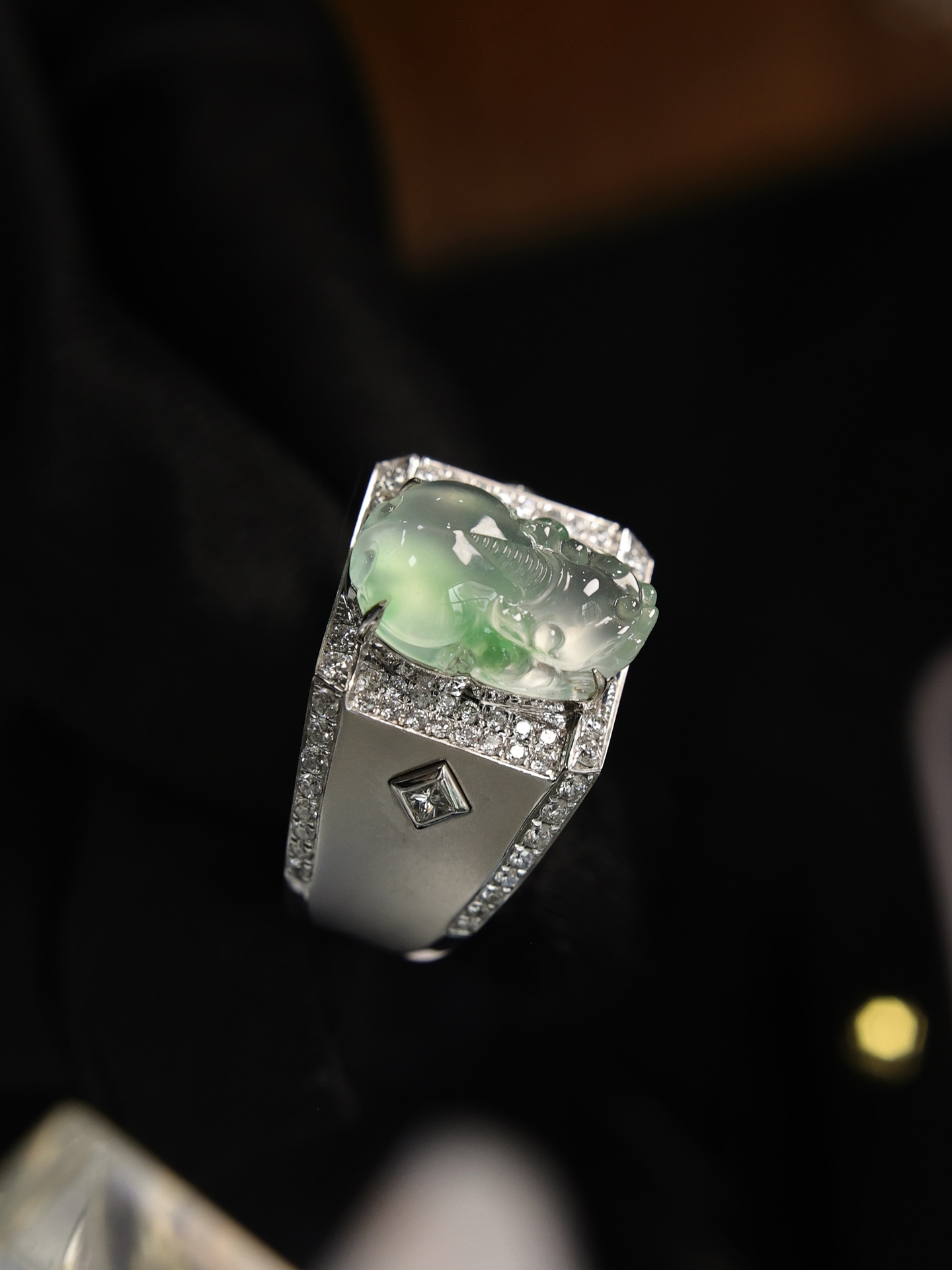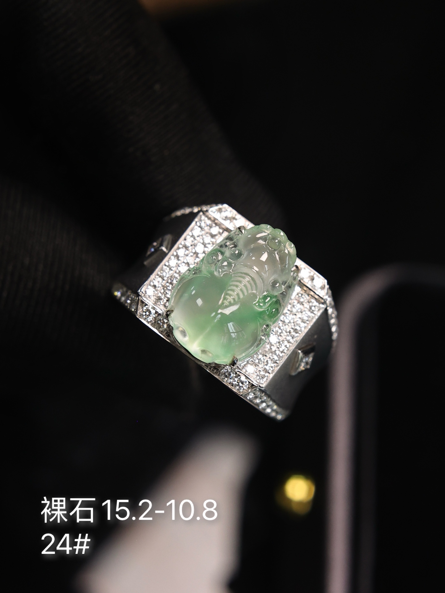 Jade ring, 18k gold set with pixiu ring, bare stone: 15.2-10.8