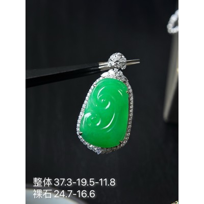 Jade pendant, 18k gold leaf pendant, high ice glass, floating green, overall: 45.0-21.2-9.7, bare stone: 30.6-18.5